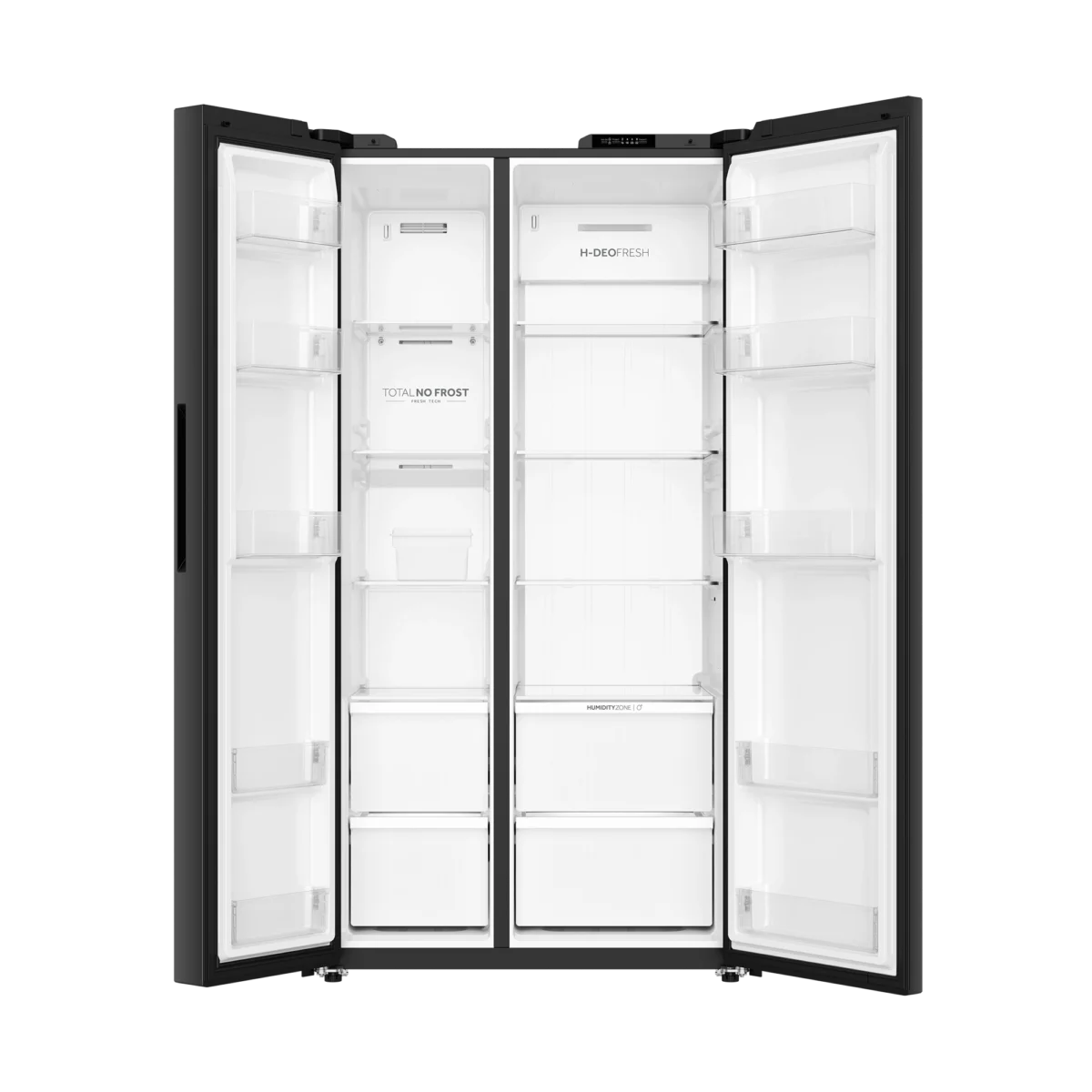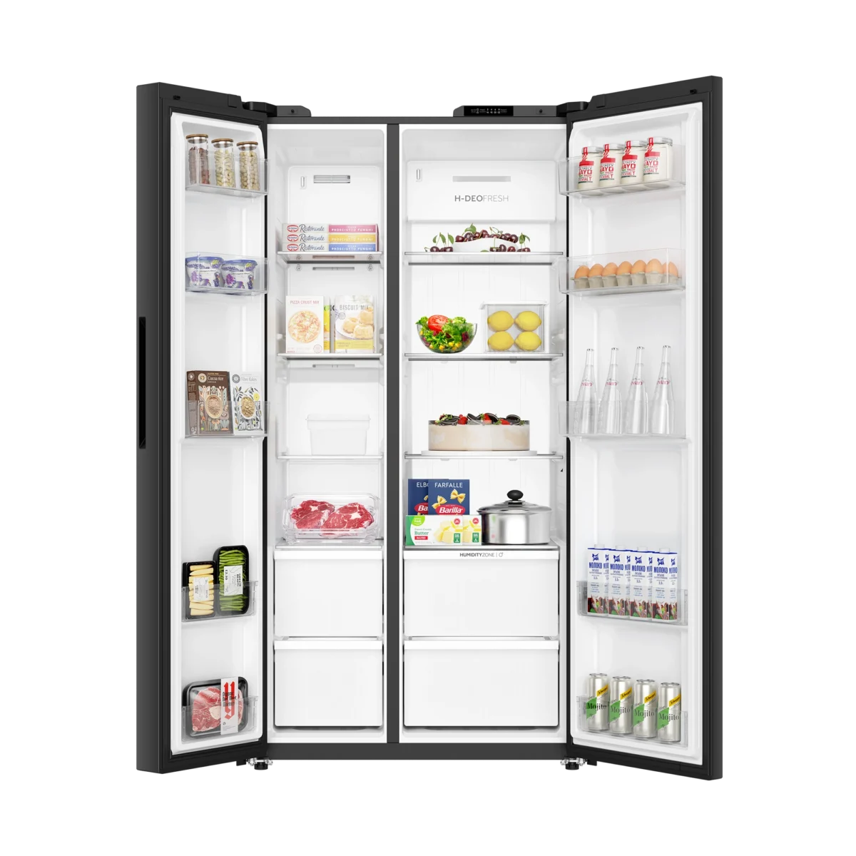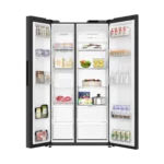 Tủ lạnh Aqua Inverter AQR-S633XA(SL) thuộc dòng tủ lạnh Side by Side với 2 cánh mở 2 bên cực kì tiện lợi, hai ngăn đông và ngăn mát được bố trí song song theo chiều dọc, bạn sẽ dễ dàng sắp xếp thực phẩm yêu thích trong tầm mắt, thuận tiện cho việc lấy ra mà không cần cúi xuống tìm kiếm. Khay kính linh hoạt có thể tùy chỉnh độ cao để phù hợp nhất với kích thước của thực phẩm lưu trữ, dễ dàng tháo lắp và vệ sinh. Ngoài ra, các ngăn kệ ở cánh tủ thiết kế nghiêng 95 độ, hạn chế tình trạng đổ ngã chai lọ.