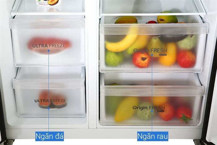 – Tủ lạnh có các hộc chứa thực phẩm tươi sống riêng biệt, điều này giúp hạn chế lẫn mùi thực phẩm, bảo quản thức ăn tươi ngon hơn.